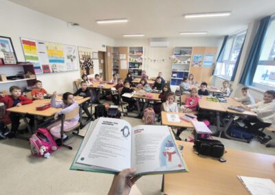 Učenici 1.a razreda, u sklopu svog cjelogodišnjeg školskog projekta “U školskoj zajednici” sudjelovali su od 15. do 29. siječnja u nacionalnom čitalačkom izazovu “15 po 15: cijela Hrvatska čita djeci”. Uz svoju učiteljicu istraživali su čaroban svijet knjiga razgovarajući o različitim vrstama knjiga, progovarajući o brojnim životnim temama pronalazeći vrijedne poruke koje su im pisci ostavljali u svojim tekstovima. Kroz ovaj mjesec poslušali su i ulomak jedne audio priče te tako obilježili Dane dječje audioknjige.
