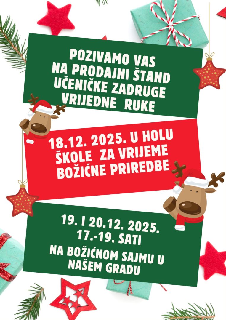 Pozivamo vas da posjetite prodajni štand Učeničke zadruge „Vrijedne ruke“.