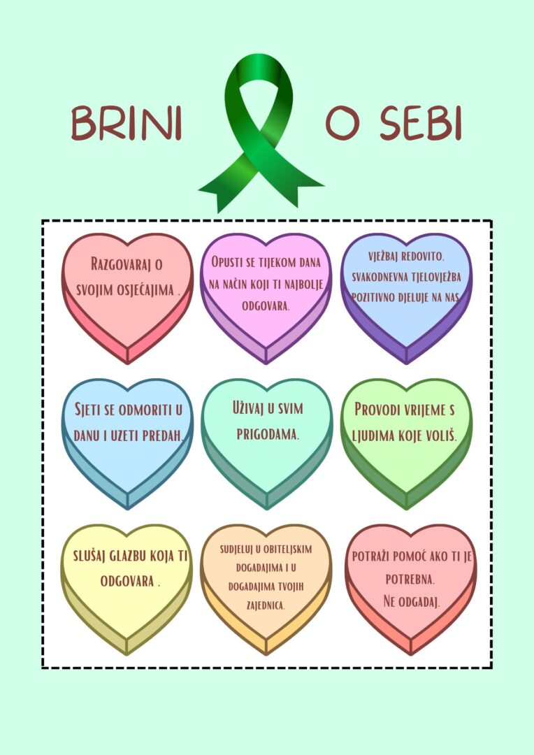 Učenice INE “Otkrivam sebe i svijet” Eva i Sofija progovorile su o ovoj važnoj temi, izradile plakat i za sve učenike i djelatnike naše škole pripremile motivacijske misli i poruke kako bi im malo uljepšale dan, ali i sebi osvijestile da je zaista dobro činiti dobro.