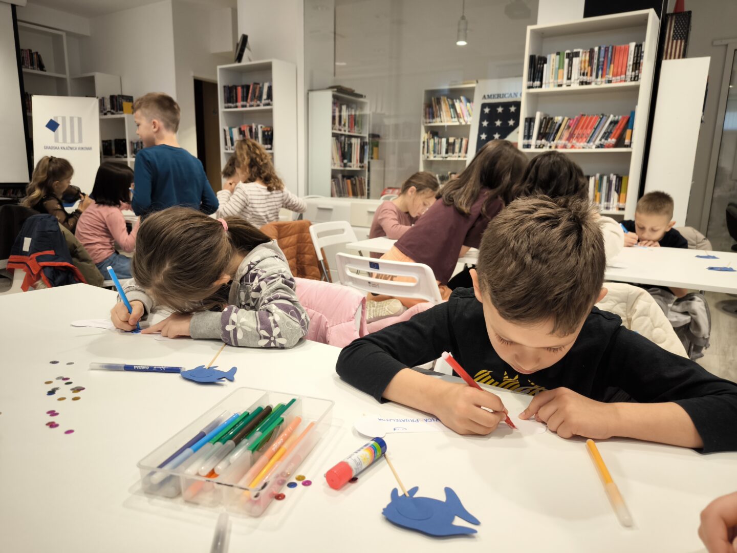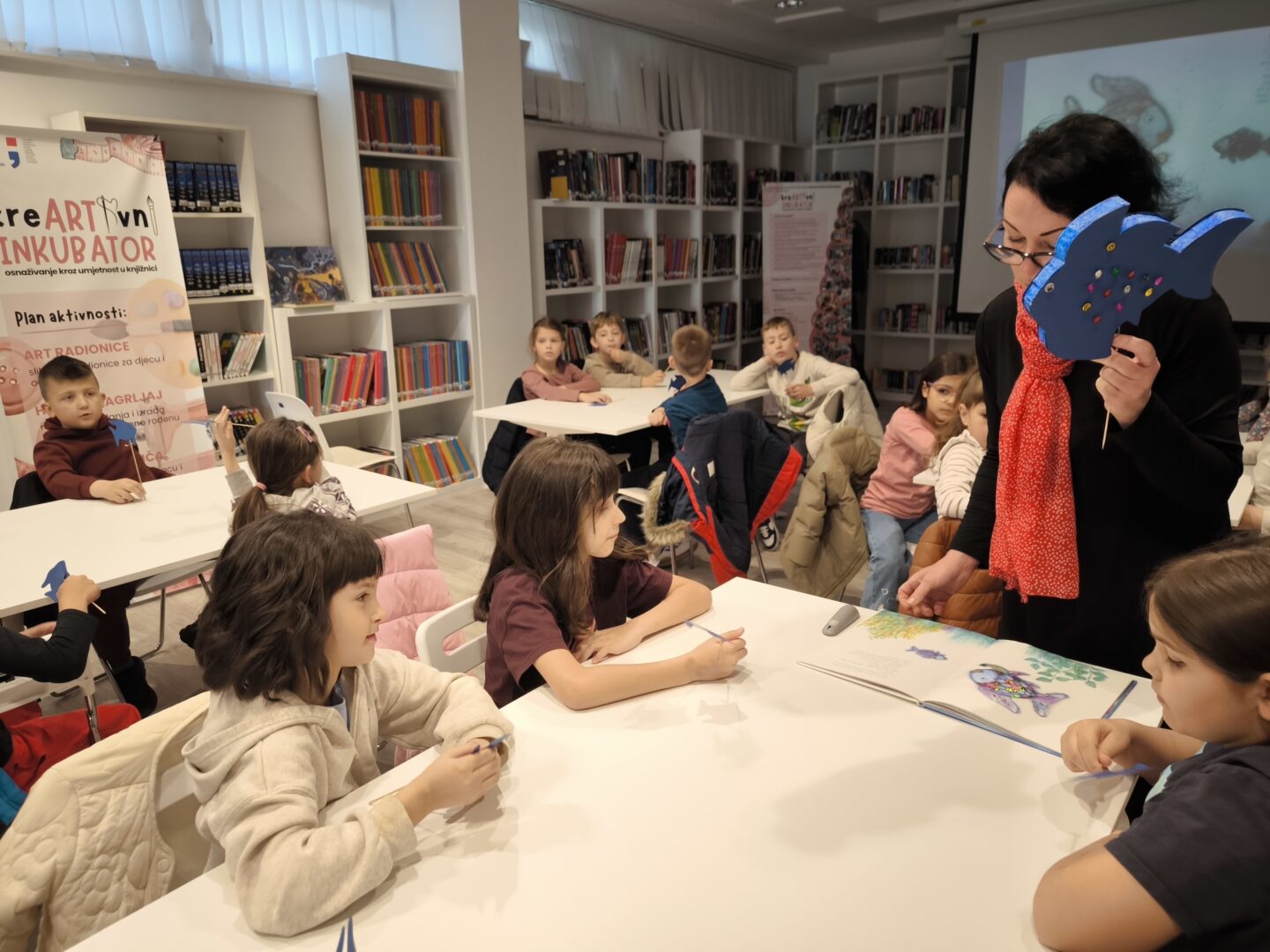 Povodom Noći knjige i Dana hrvatske knjige, Gradska knjižnica Vukovar organizirala je 23.4.2026. kreativnu radionicu za djecu inspiriranu pričom “Riba duginih boja”.