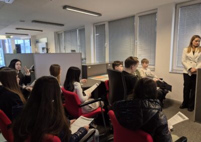 Tijekom posjeta kroz banku ih je provela gospođa Marijana Kujundžić, koja im je na zanimljiv i pristupačan način predstavila način rada banke. Učenici su se upoznali s osnovnim pojmovima bankarskog poslovanja te vrstama štednje i kredita.