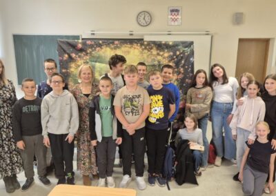 U petak, 24. 10. 2025., našu je školu posjetila Dubravka Payerl, prof. hrvatskoga jezika, dipl. knjižničarka i pripovjedačica. Došla je na poziv naše učiteljice Ivane Antolović. Održala je radionicu kreativnoga pripovijedanja u 5.a i 5.b razredu. Tijekom radionice, učenici su slušali pripovijedanje priče, sudjelovali u dramskoj igri u kojoj su zamrznutim slikama pokazali scene iz priče, pleli priču pomoću čarobnog klupka, a na kraju su priču oslikali i oživjeli u kamišibaj kazalištu. Bio je ovo lijep susret i radujemo se svakom sljedećem.