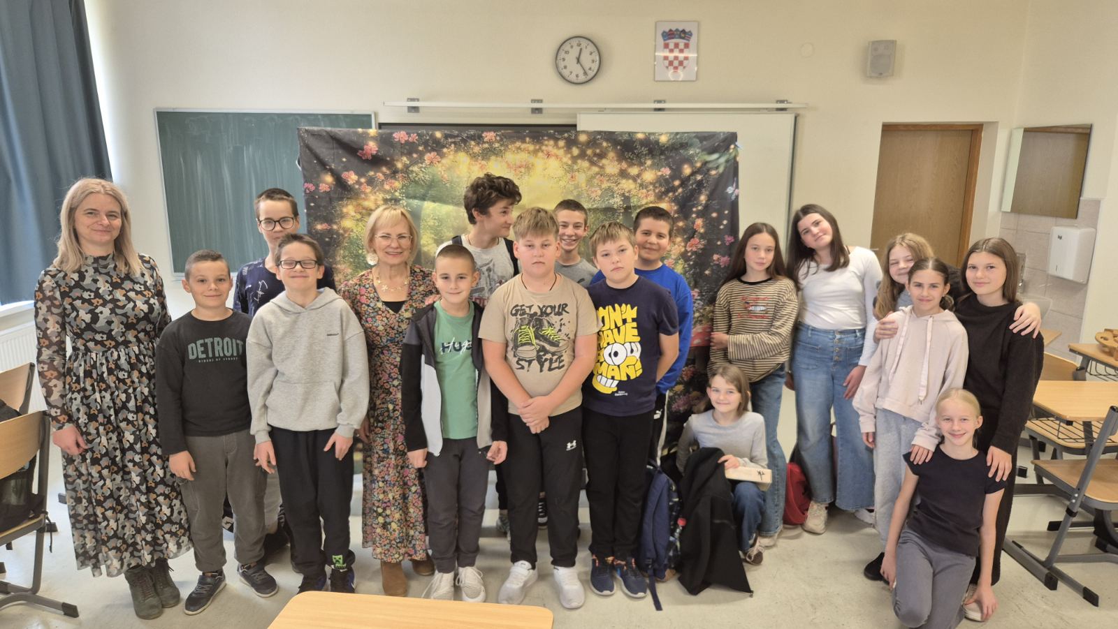 U petak, 24. 10. 2025., našu je školu posjetila Dubravka Payerl, prof. hrvatskoga jezika, dipl. knjižničarka i pripovjedačica. Došla je na poziv naše učiteljice Ivane Antolović. Održala je radionicu kreativnoga pripovijedanja u 5.a i 5.b razredu. Tijekom radionice, učenici su slušali pripovijedanje priče, sudjelovali u dramskoj igri u kojoj su zamrznutim slikama pokazali scene iz priče, pleli priču pomoću čarobnog klupka, a na kraju su priču oslikali i oživjeli u kamišibaj kazalištu. Bio je ovo lijep susret i radujemo se svakom sljedećem.