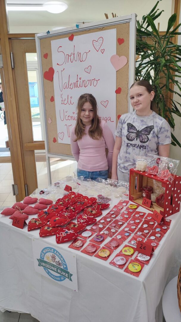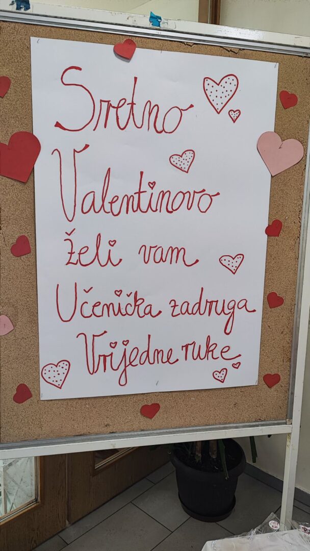 Jučer smo u holu škole održali prodajnu izložbu naše učeničke zadruge. Povodom Valentinova, dana zaljubljenih, na našem se štandu našlo mnoštvo lijepih i kreativnih poklončića izrađenih s puno truda, mašte i ljubavi.