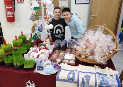 Ove godine naša učenička zadruga predstavila je svoj rad na dva događaja: prigodnom prodajnom izložbom u holu škole za vrijeme božićne priredbe te na Božićnom sajmu u našem gradu Vukovaru. Kao i uvijek, lijepo smo se zabavili, uživali u izradi proizvoda i dobili pohvale za naš rad. Hvala svima koji su kupili naše proizvode i tako nam omogućili da radimo i stvaramo dalje.