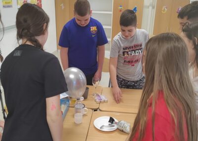 Učenici 7.b razreda, zajedno s učiteljicom fizike, obilježili su ovaj dan izvodeći zanimljive i poučne pokuse s vodom. Kroz praktičan rad imali su priliku istraživati i promatrati različite fizikalne pojave te uočiti koliko voda može biti vrijedan i zanimljiv alat za učenje. Izvodili su pokuse povezane s gustoćom, površinskom napetošću i tlakom, kao i niz drugih pokusa koji su dodatno potaknuli njihovu znatiželju.
