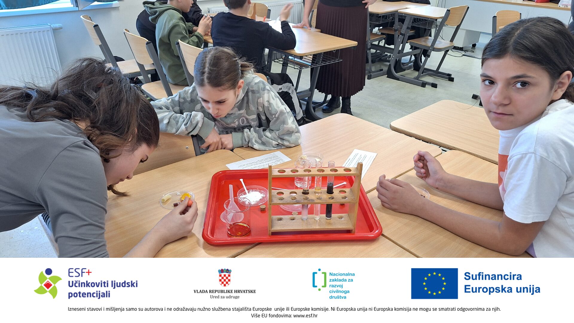 U ponedjeljak, 23. veljače 2026., u našoj je školi održana zanimljiva kemijska radionica pod nazivom „Nevidljivo postaje vidljivo“. Učenici su kroz niz pokusa istraživali kako tvari koje ne možemo vidjeti golim okom ipak postoje svuda oko nas – te kako ih uz pomoć znanja i pokusa možemo učiniti vidljivima.