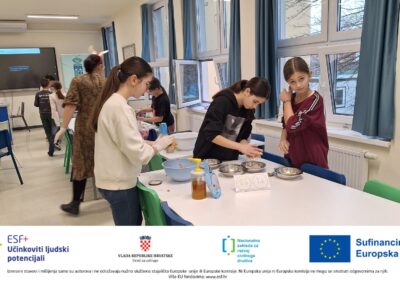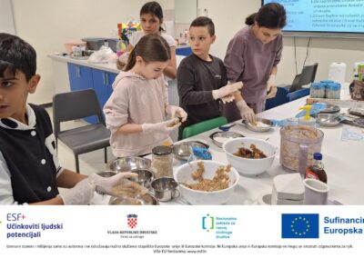 Radionica je učenicima omogućila razvoj praktičnih vještina, timskog rada te osvještavanje važnosti zdrave prehrane, a završila je lijepim pakiranjem gotovih proizvoda.