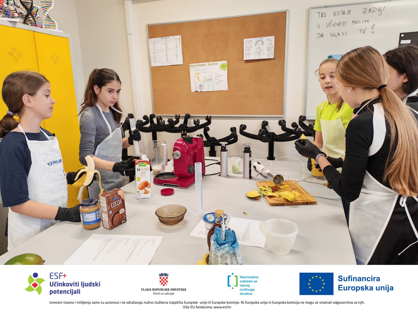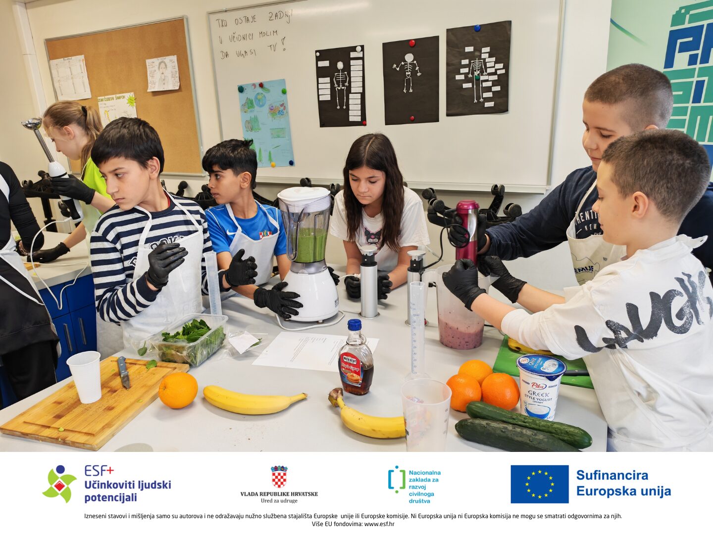 U pripremi su koristili poznate sastojke poput špinata i borovnica, ali i one nešto rjeđe zastupljene u svakodnevnoj prehrani, poput manga te kokosovog i bademovog mlijeka. Djeca su najprije upoznata s načinom rada blendera, pravilima sigurnosti te pravilnom pripremom namirnica. Također su saznali više o njihovoj nutritivnoj vrijednosti i važnosti uravnotežene prehrane.