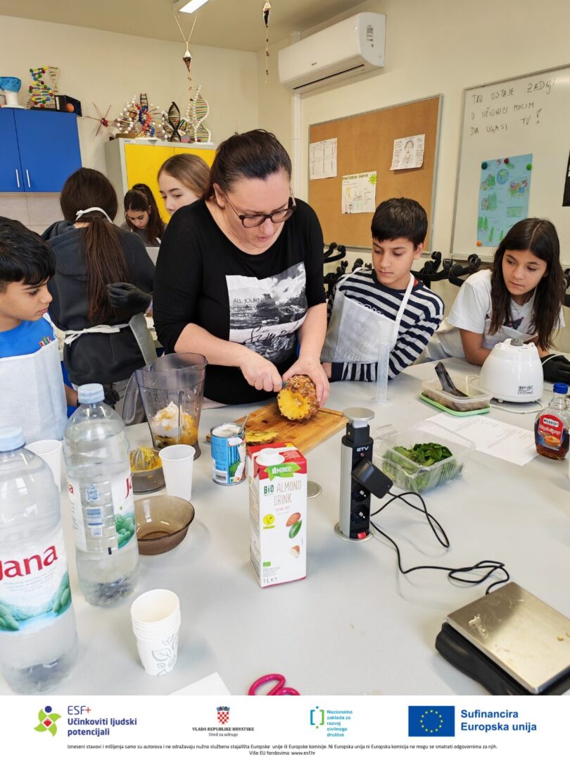 U našoj je školi 26. siječnja 2026. održana radionica „Škola zdravih koktela“. Kako i sam naziv govori, radionica je sudionicima omogućila da nakon blagdanskog razdoblja kroz praktičan rad pripreme vlastiti zdravi koktel, odnosno smoothie, od raznovrsnih i nutritivno vrijednih namirnica.